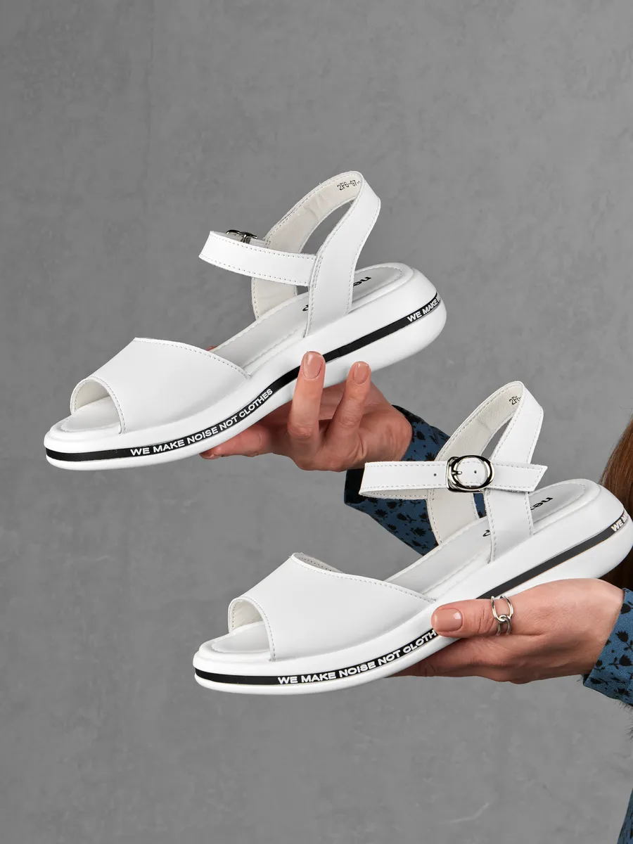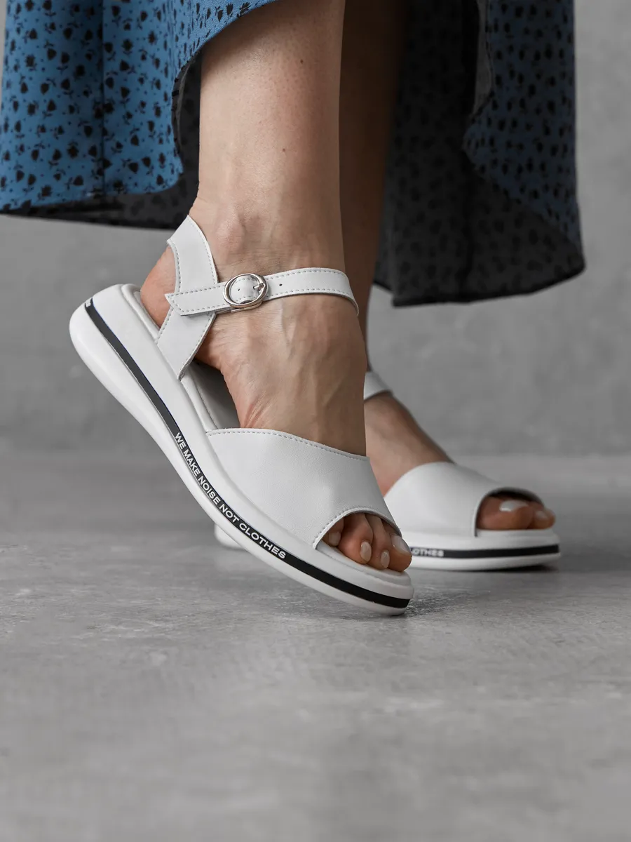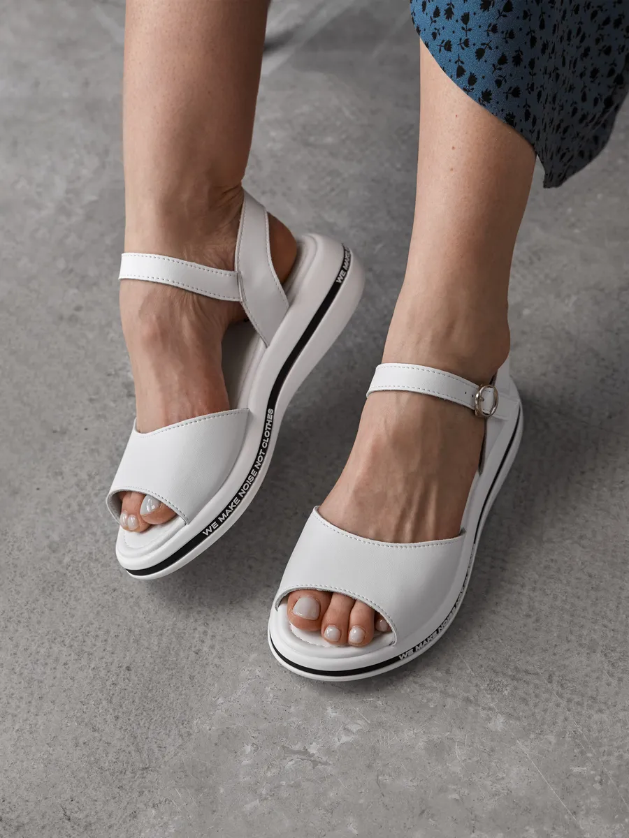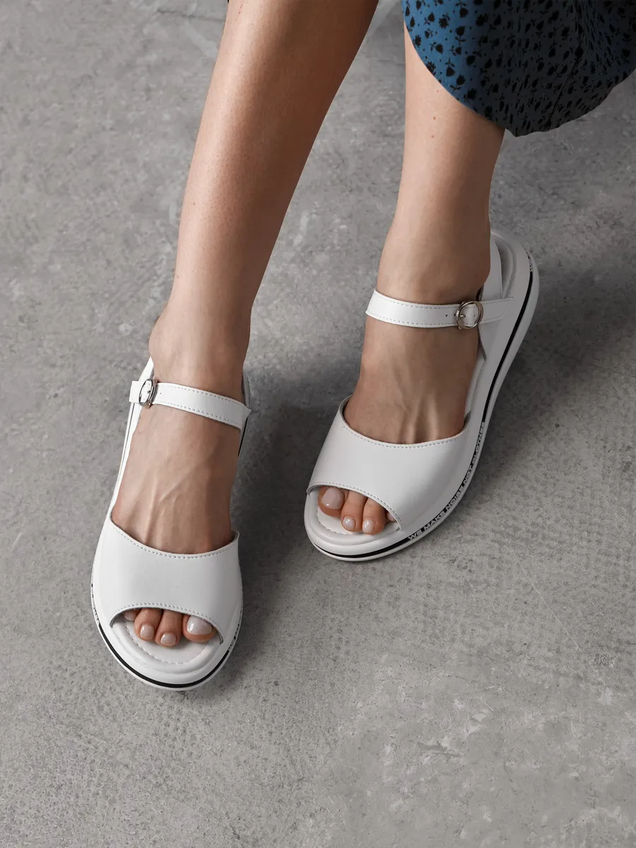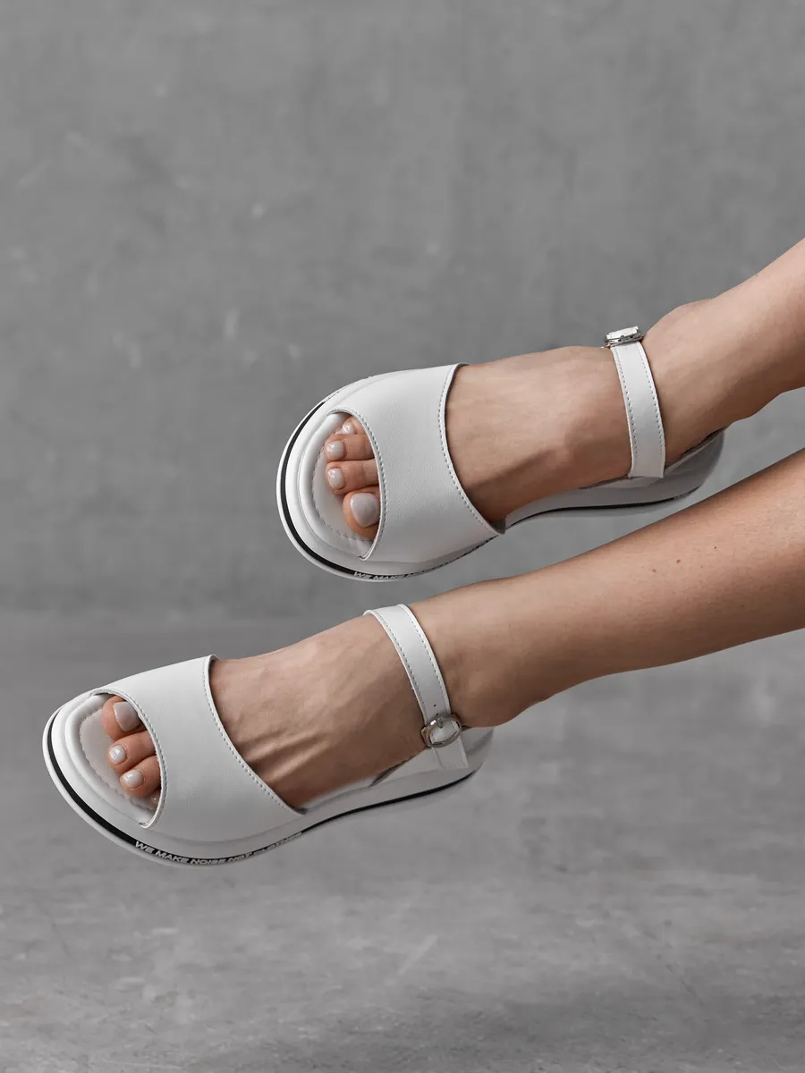 Эти женские босоножки — идеальное решение для летнего сезона. Выполненные из высококачественной натуральной кожи, они сочетают в себе лёгкость, мягкость и прочность, что делает их идеальными как для длительных прогулок, так и для торжественных мероприятий. Белый цвет придаёт модели свежесть и элегантность, отлично подчёркивая загар и легко комбинируясь с любыми оттенками одежды — от пастельных до ярких.