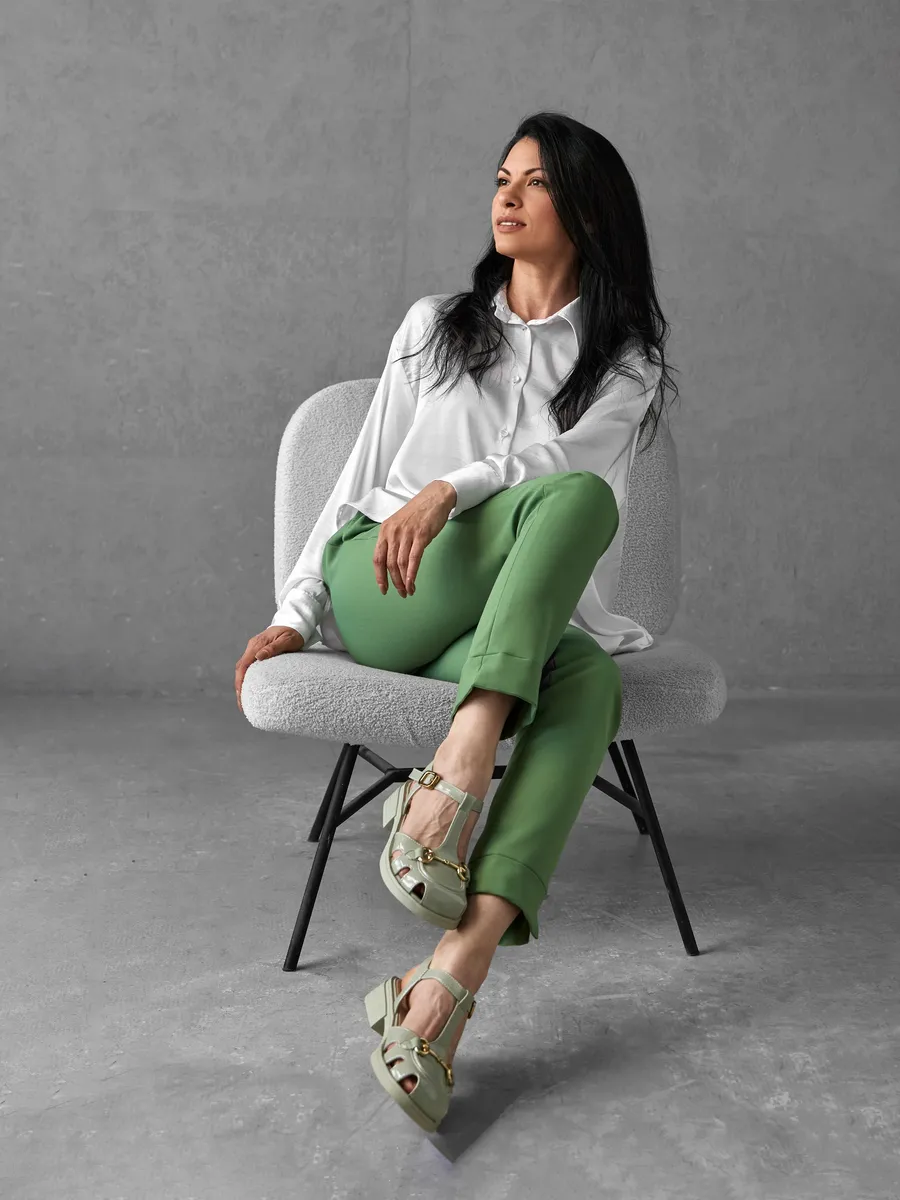 Летние сандалии особенно выигрышно смотрятся в салатовом оттенке, что придаёт образу свежесть и подчёркивает загар. Они легко комбинируются с юбками, платьями, сарафанами и даже лёгкими офисными брюками, превращая повседневный наряд в стильный и завершённый образ.