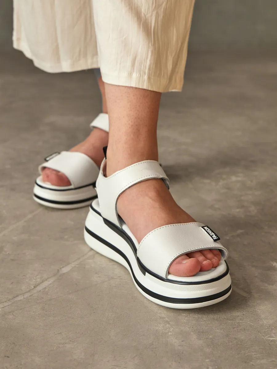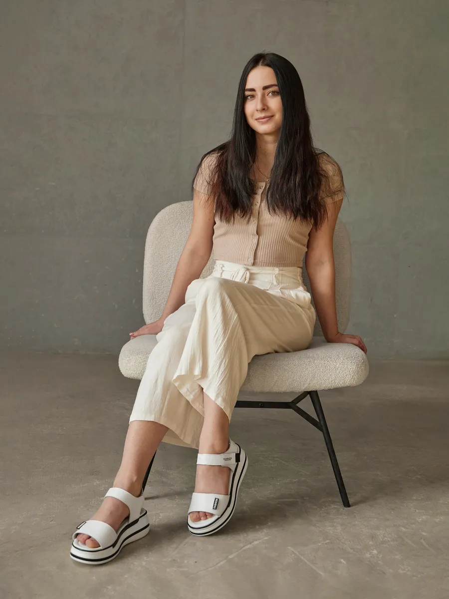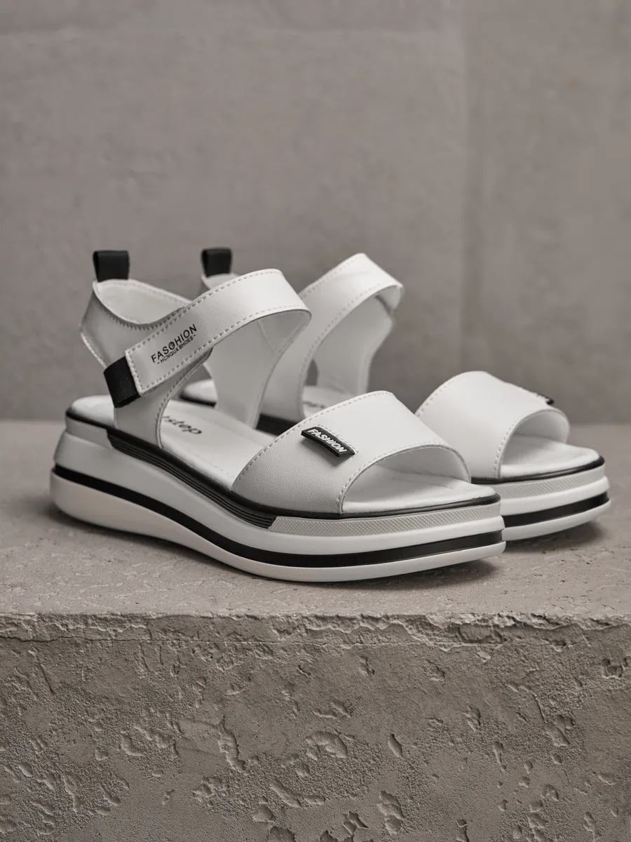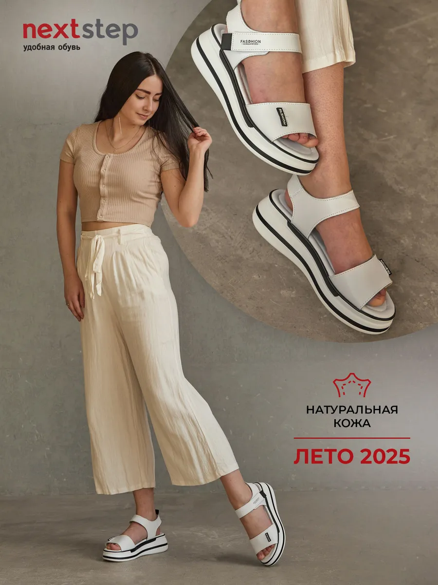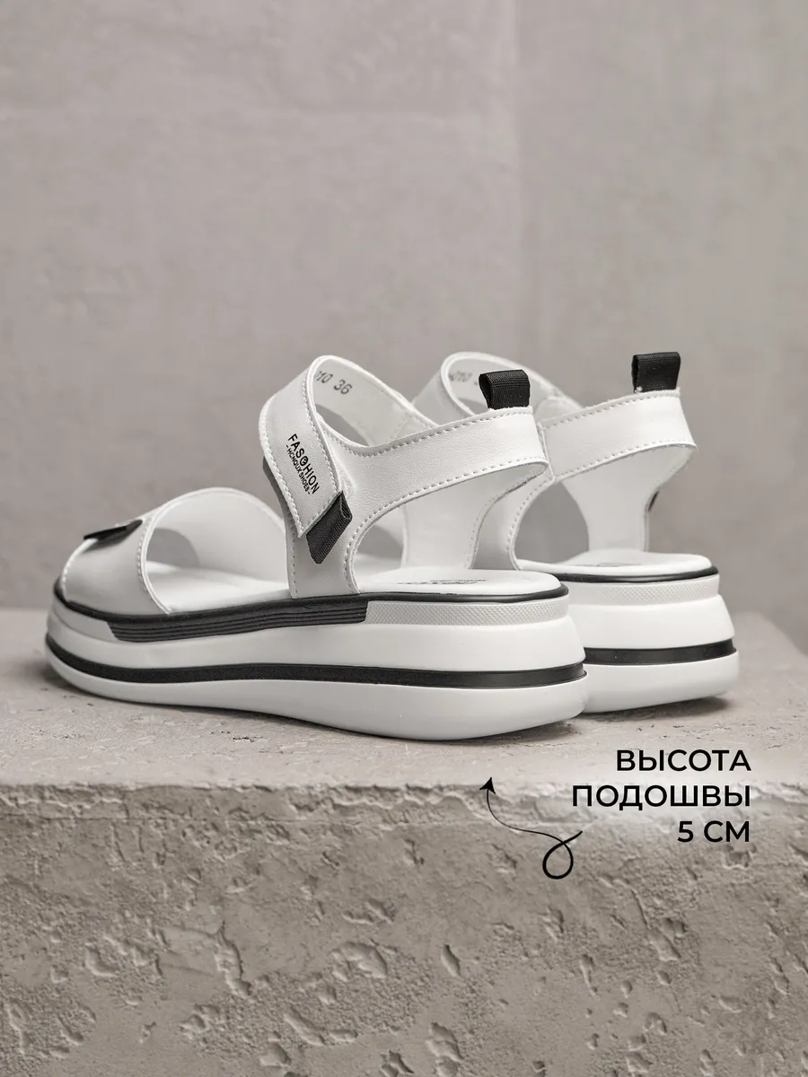 Лето — время лёгкости, свободы и ярких образов. Женские босоножки на платформе —  стильная модель сочетает в себе последние тренды 2025 года, удобство и универсальность. Выполненные из композитной кожи, они сочетают в себе элегантность, удобство и модные тренды. Лёгкий и стильный дизайн делает их универсальной обувью для женщин, которые ценят комфорт и эстетику. Мягкая стелька из экокожи идеально подстраивается под ногу, создавая ощущение комфорта при каждом шаге. Открытый носок и пятка позволяют ногам дышать, а удобные ремешки на липучках обеспечивают быструю фиксацию и регулируемую посадку. Модель оснащена гибкой и лёгкой подошвой, которая добавляет устойчивости и подходит как для повседневных прогулок, так и для длительных поездок, так как благодаря хорошим амортизирующим свойствам снижает нагрузку на стопу. Натуральные материалы верха делают босоножки прочными и долговечными, а их белый цвет придаёт элегантность и легко сочетается с летним гардеробом. Эти босоножки станут отличным дополнением к повседневному образу. Благодаря стильному дизайну и удобной посадке они отлично смотрятся с летними платьями, юбками, шортами и лёгкими брюками. Добавьте в свою коллекцию модные женские босоножки на платформе  и наслаждайтесь комфортом, лёгкостью и элегантностью!