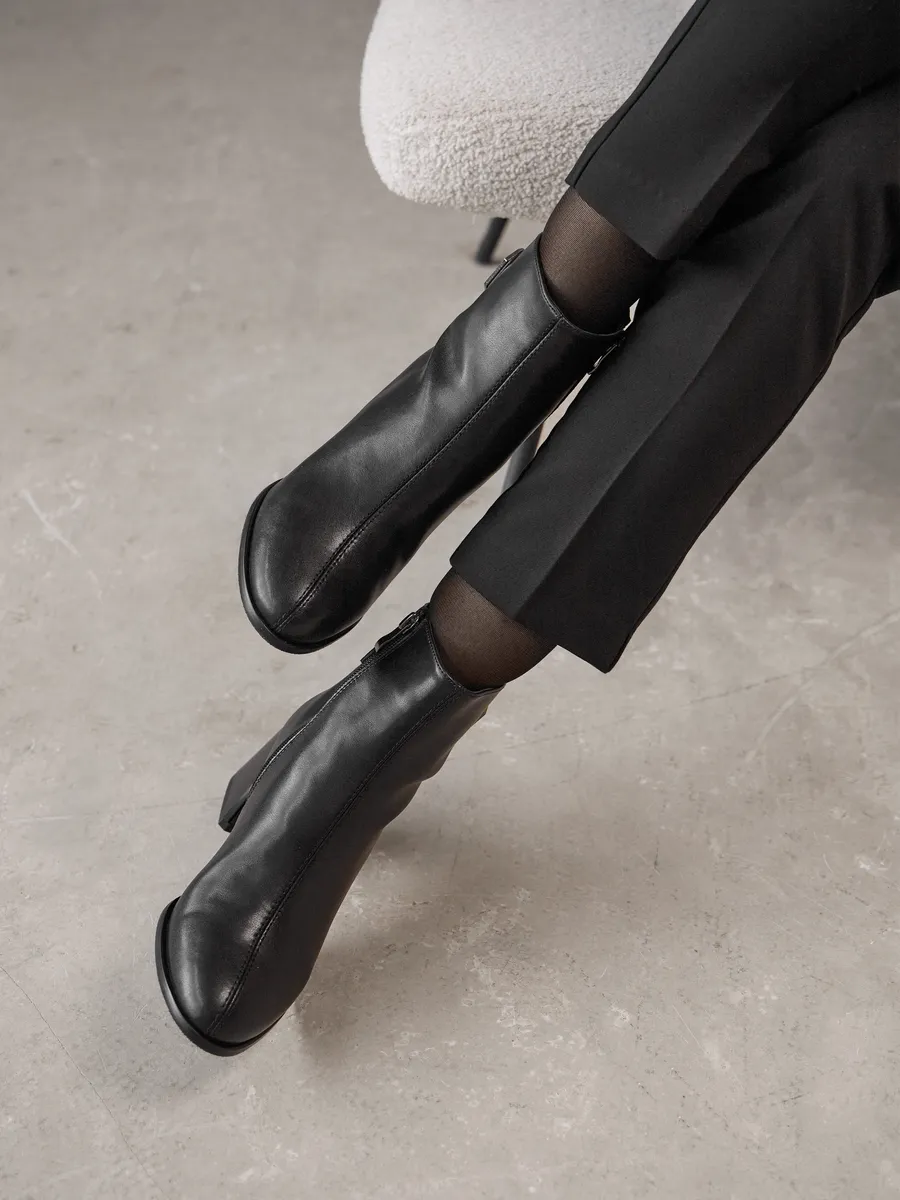 Кожаная поверхность устойчива к износу и не требует сложного ухода, а молния на внутренней стороне делает обувь удобной для узкой и широкой стопы, облегчая процесс надевания. Эти полусапожки отлично сочетаются с платьями, юбками, джинсами и деловыми костюмами, добавляя в образ шарм и элегантность.