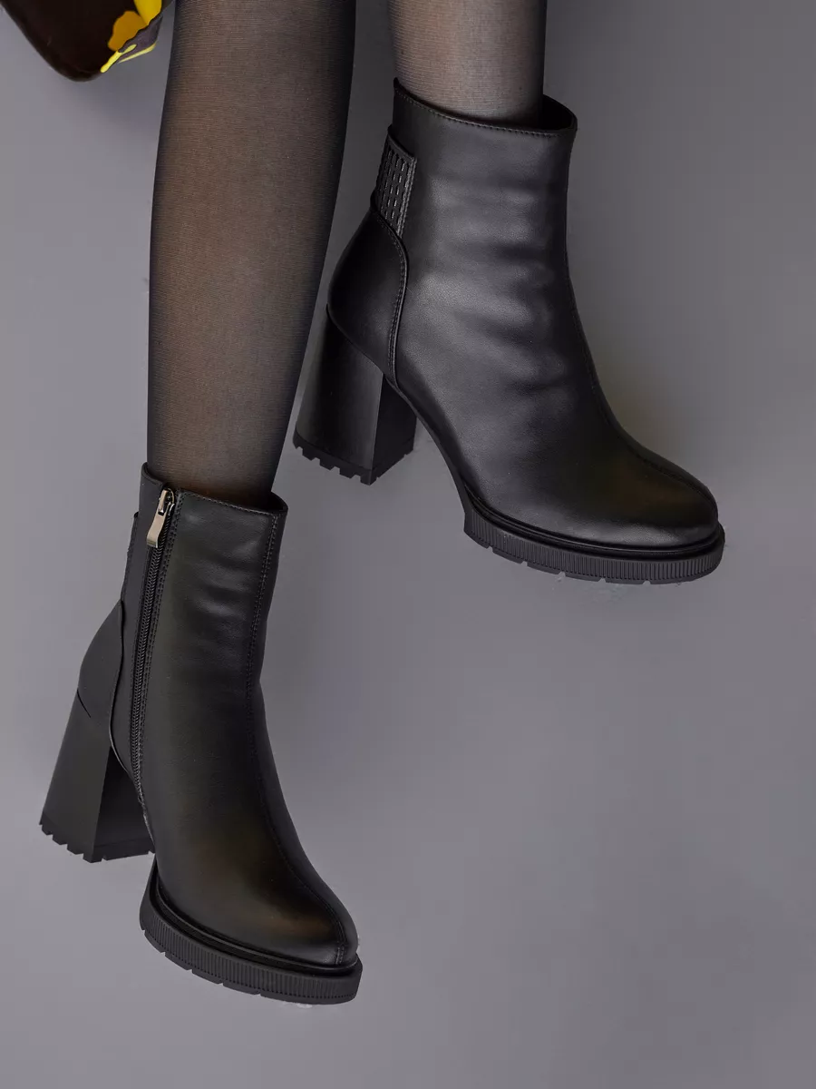 Утепленные ботильоны идеально подходят для зимнего сезона, обеспечивая комфорт в условиях низких температур. Каблук средней высоты делает обувь подходящей как для повседневного ношения, так и для работы в офисе. Эти теплые и непромокаемые сапоги станут незаменимой частью вашего зимнего гардероба.