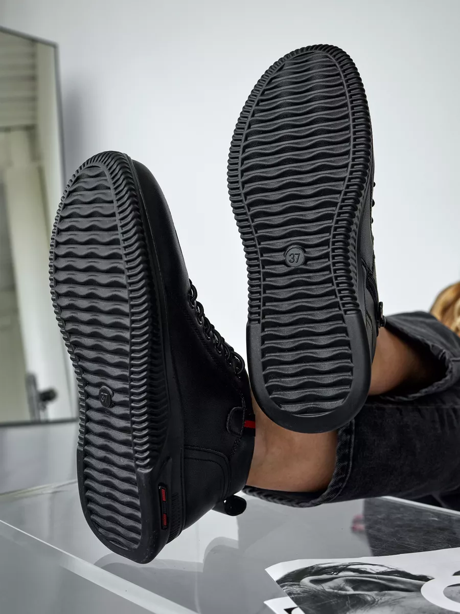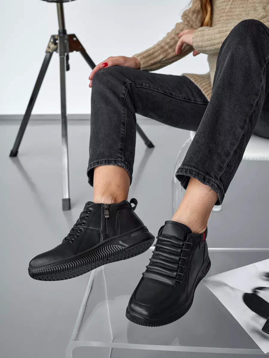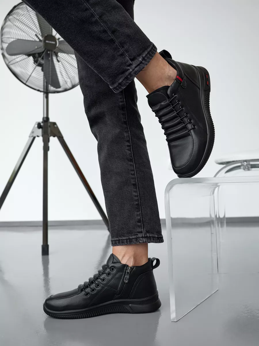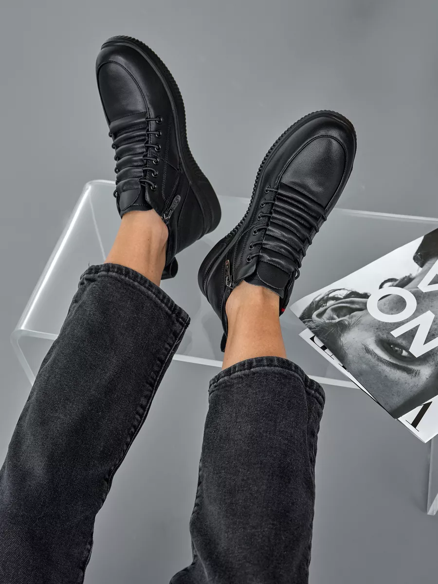 Высококачественная кожа гарантирует долговечность и комфорт при передвижении. Эти легкие ботиночки идеально подходят для осеннего периода, подкладка и стелька из байки обеспечат тепло и удобство вашим ногами на протяжении всего дня. Усиленная пятка позволит надежно зафиксировать и поддерживать в анатомическим правильном положении вашу стопу. Необычный дизайн кроссовок со шнуровкой позволят вам отрегулировать посадку обуви так, чтобы она идеально села по полноте и подъему. Современный дизайн делает их модными и стильными. Легкость и удобство позволят носить их каждый день.