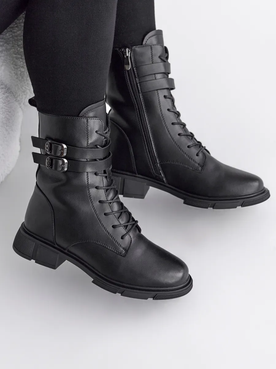Высокие ботинки с молнией и шнурками для регулировки подъема по ноге создают стильный образ. Классическая модель черного цвета подойдет к любому повседневному, кэжуал, молодежному или праздничному наряду. Подойдут как для подростков, так и для девушек и женщин любого возраста.