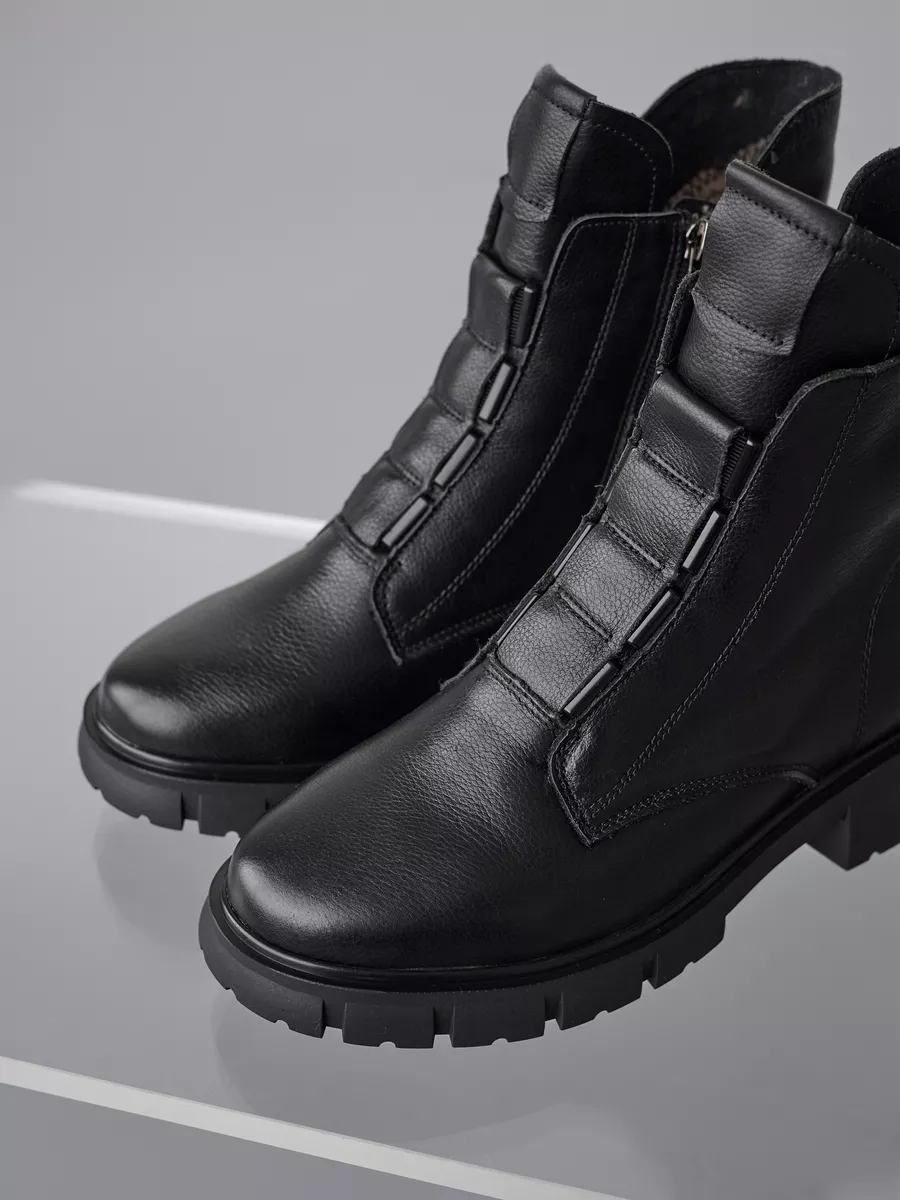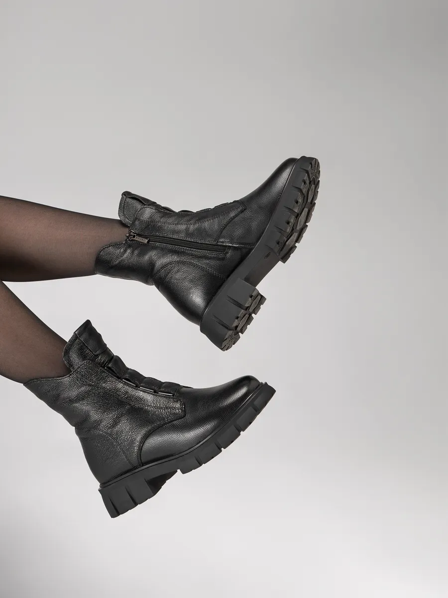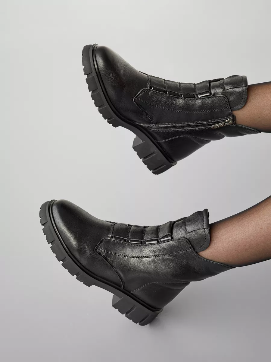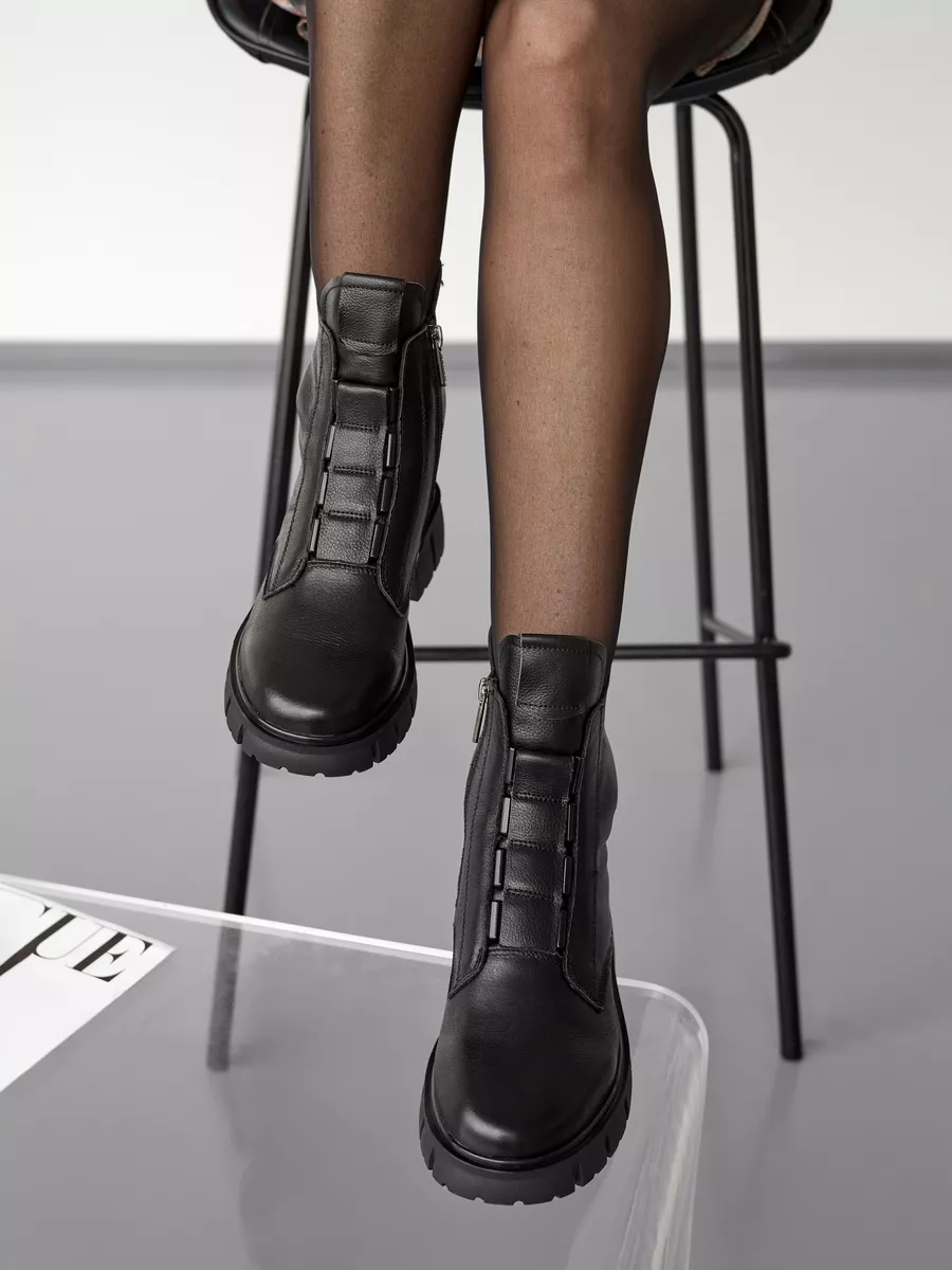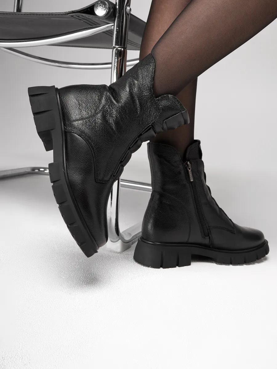 Эти женские ботинки специально разработаны для зимы, обеспечивая высокий уровень комфорта. Изготовленные из натуральной кожи, они гарантируют, что ваши ноги останутся теплыми в холодное время года. Эти утепленные сапоги идеально подходят для тех, кто ищет стильные и практичные решения. Полуботинки на платформе создают модные образы и обеспечивают уверенность на скользких поверхностях благодаря нескользящей подошве.