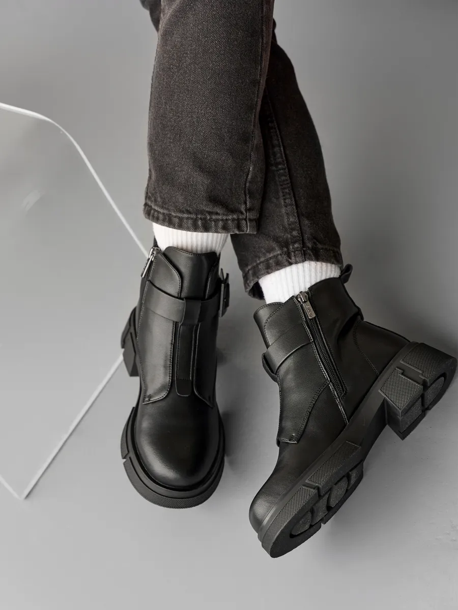 Обувь продумана до мелочей: оснащена удобной молнией для быстрого надевания и снятия, что оценит каждая девушка. Ремешок с пряжкой добавляет изюминку классическому дизайну сапожек.