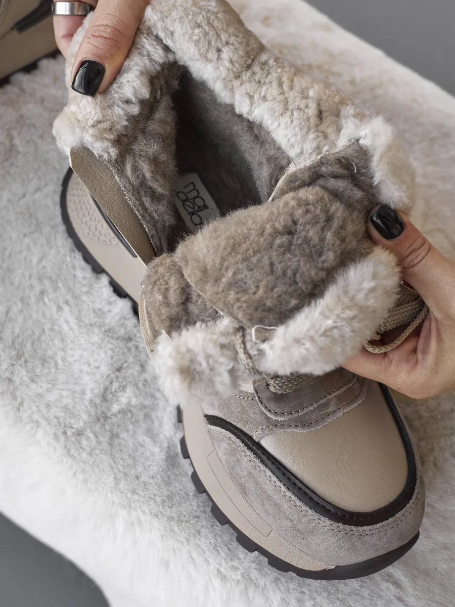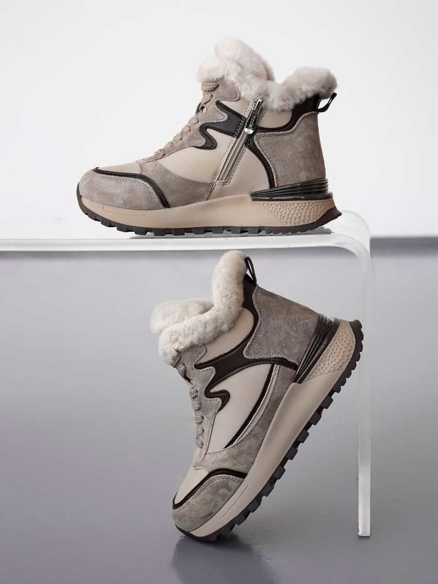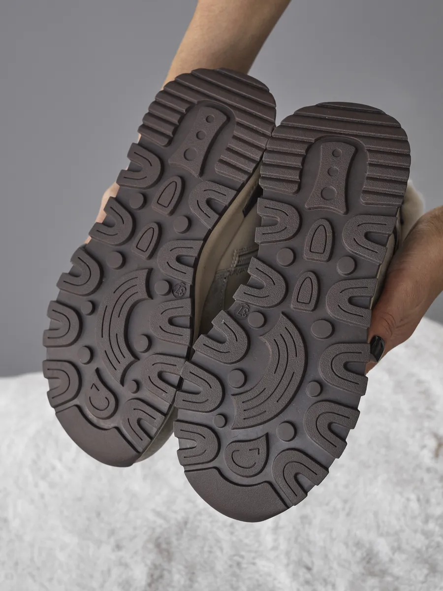 Эти стильные ботинки бежевого цвета подойдут как для женщин, так и для подростков, которые ищут модные и удобные решения на каждый день. Универсальный дизайн позволяет сочетать ботинки с повседневной одеждой — джинсами, леггинсами или даже юбками, что делает их неотъемлемой частью любого зимнего образа. В то же время, спортивные элементы дизайна добавляют динамичности и современности, что особенно актуально для активных людей, ведущих насыщенный образ жизни.