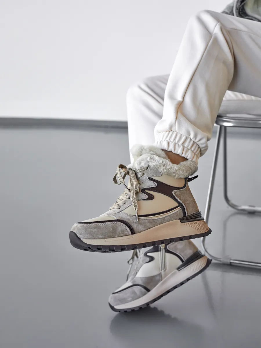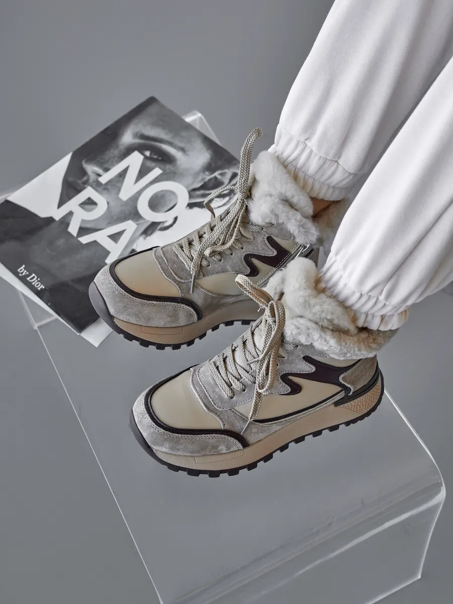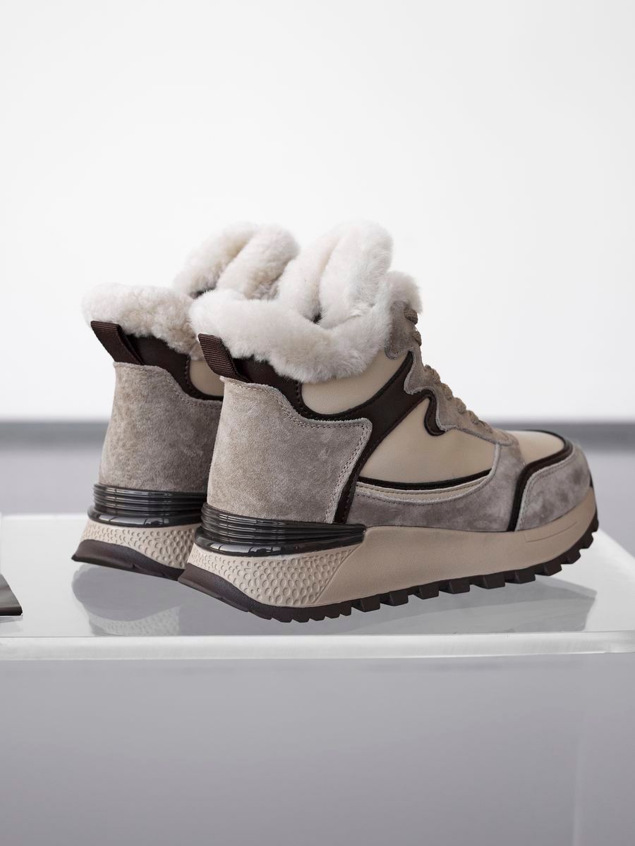 Эти стильные ботинки бежевого цвета подойдут как для женщин, так и для подростков, которые ищут модные и удобные решения на каждый день. Универсальный дизайн позволяет сочетать ботинки с повседневной одеждой — джинсами, леггинсами или даже юбками, что делает их неотъемлемой частью любого зимнего образа. В то же время, спортивные элементы дизайна добавляют динамичности и современности, что особенно актуально для активных людей, ведущих насыщенный образ жизни.