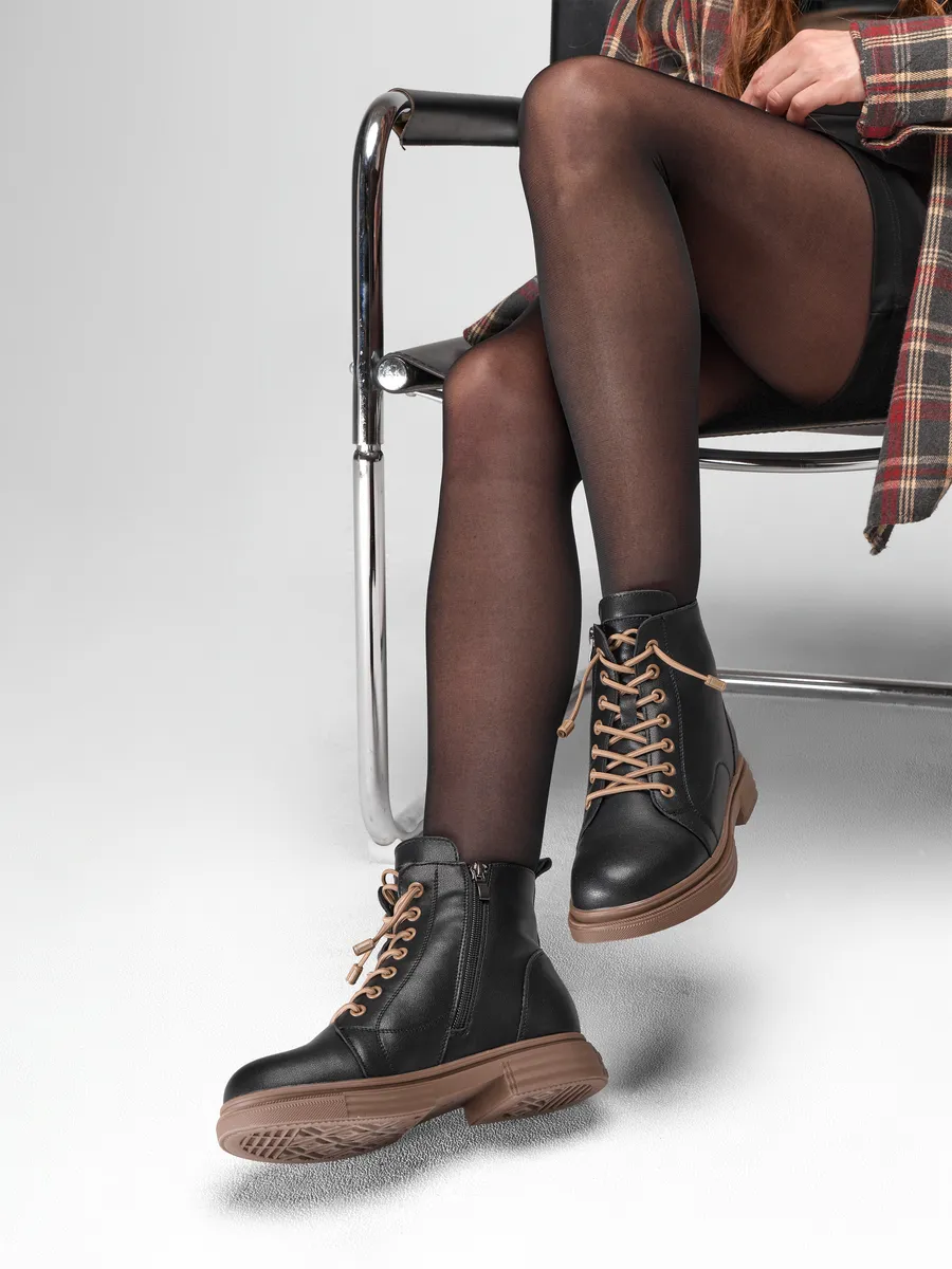 Ботинки на невысоком каблуке обеспечивают устойчивость при ходьбе по снегу или льду благодаря нескользящей подошве. Это позволяет уверенно чувствовать себя в любой ситуации! Ботинки справедливо считаются модными и прекрасно вписываются в повседневный городской стиль.