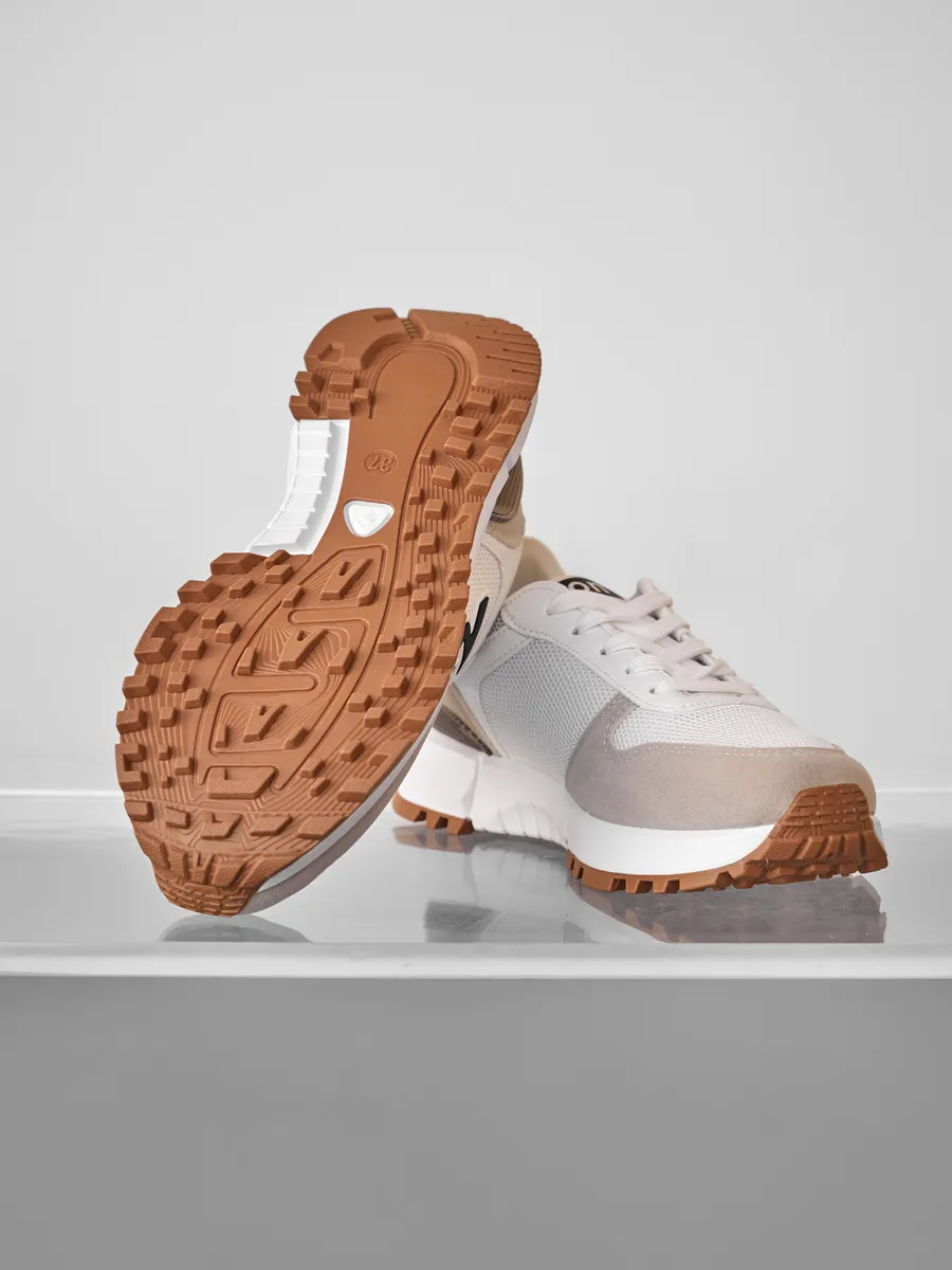 Надёжная шнуровка обеспечивает удобную фиксацию и позволяет регулировать плотность посадки. Кроссовки отлично подходят даже для широкой ноги, не сдавливая стопу и обеспечивая естественное движение. Съемная мягкая стелька и внутренняя подкладка создают дополнительный комфорт, а толстая подошва придаёт обуви стильный акцент и защищает ноги от ударных нагрузок при ходьбе.