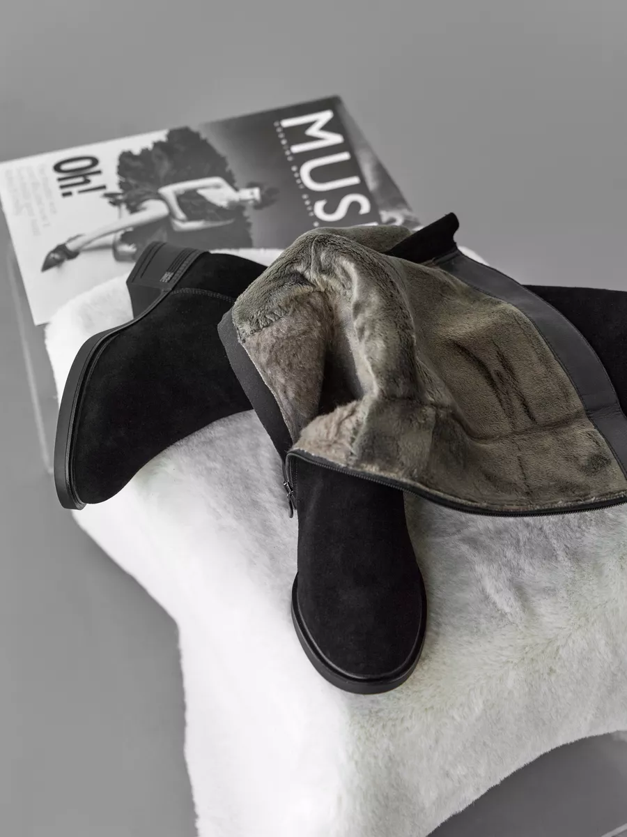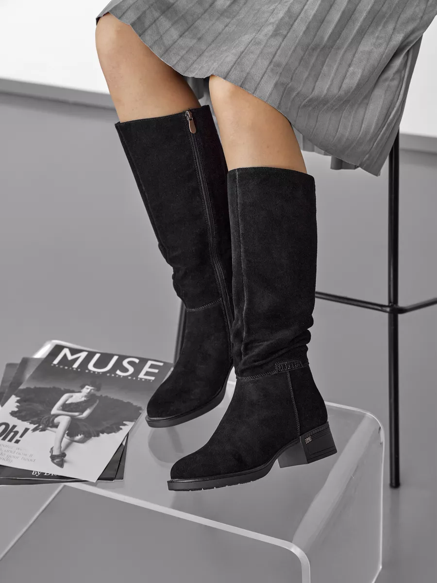 Женская зимняя обувь представлена высокими сапогами, идеально подходящими для холодного времени года. Эти классические сапожки выполнены из натуральной замши, что придаёт им элегантный вид и обеспечивает долговечность. Замшевые модели всегда остаются в моде, а зимнее время требует особого внимания к выбору обуви. Сапоги подходят для женщин, предпочитающих стильные и практичные решения.