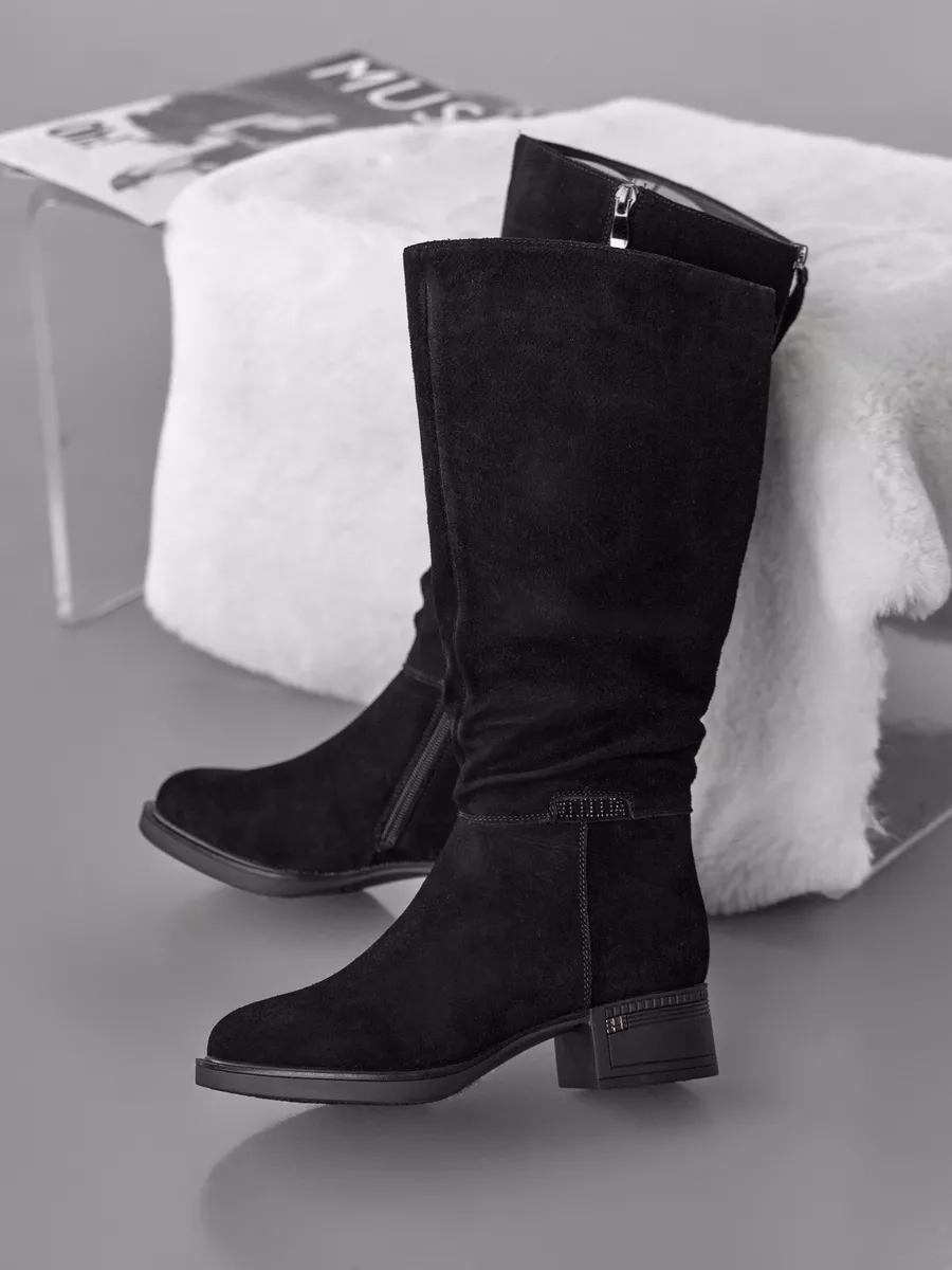 Сапоги женские зимние натуральная замша на каблуке RQ315-031к