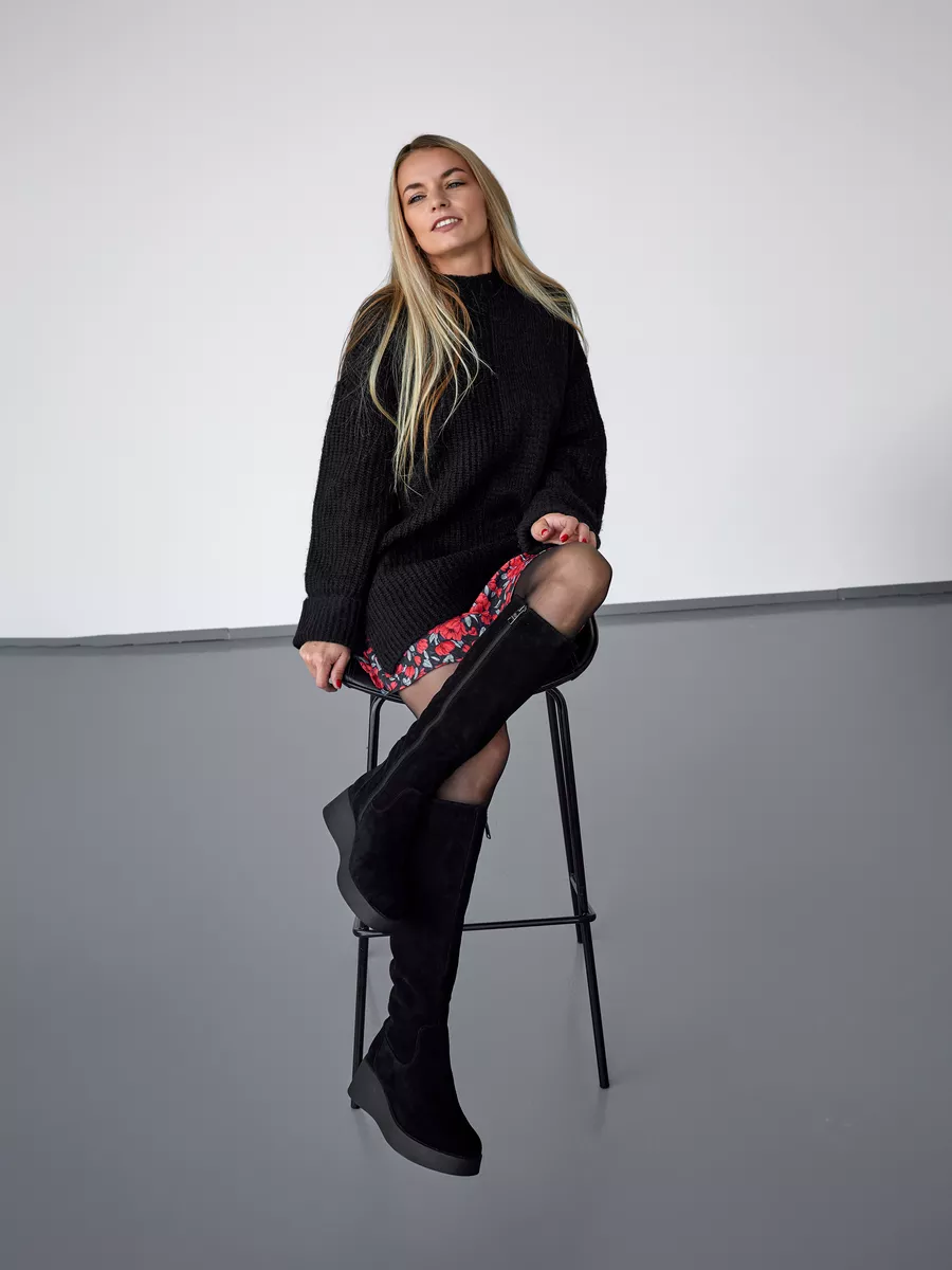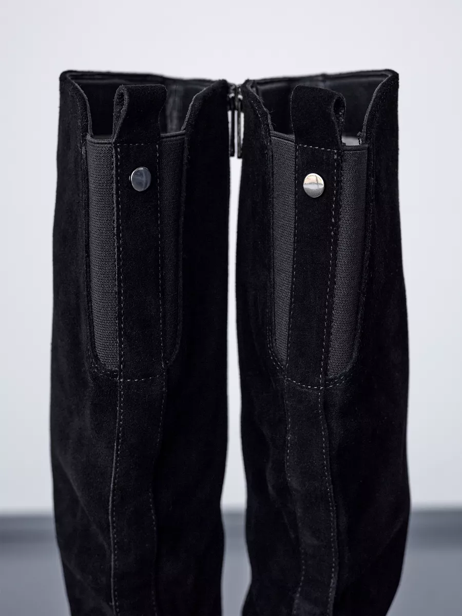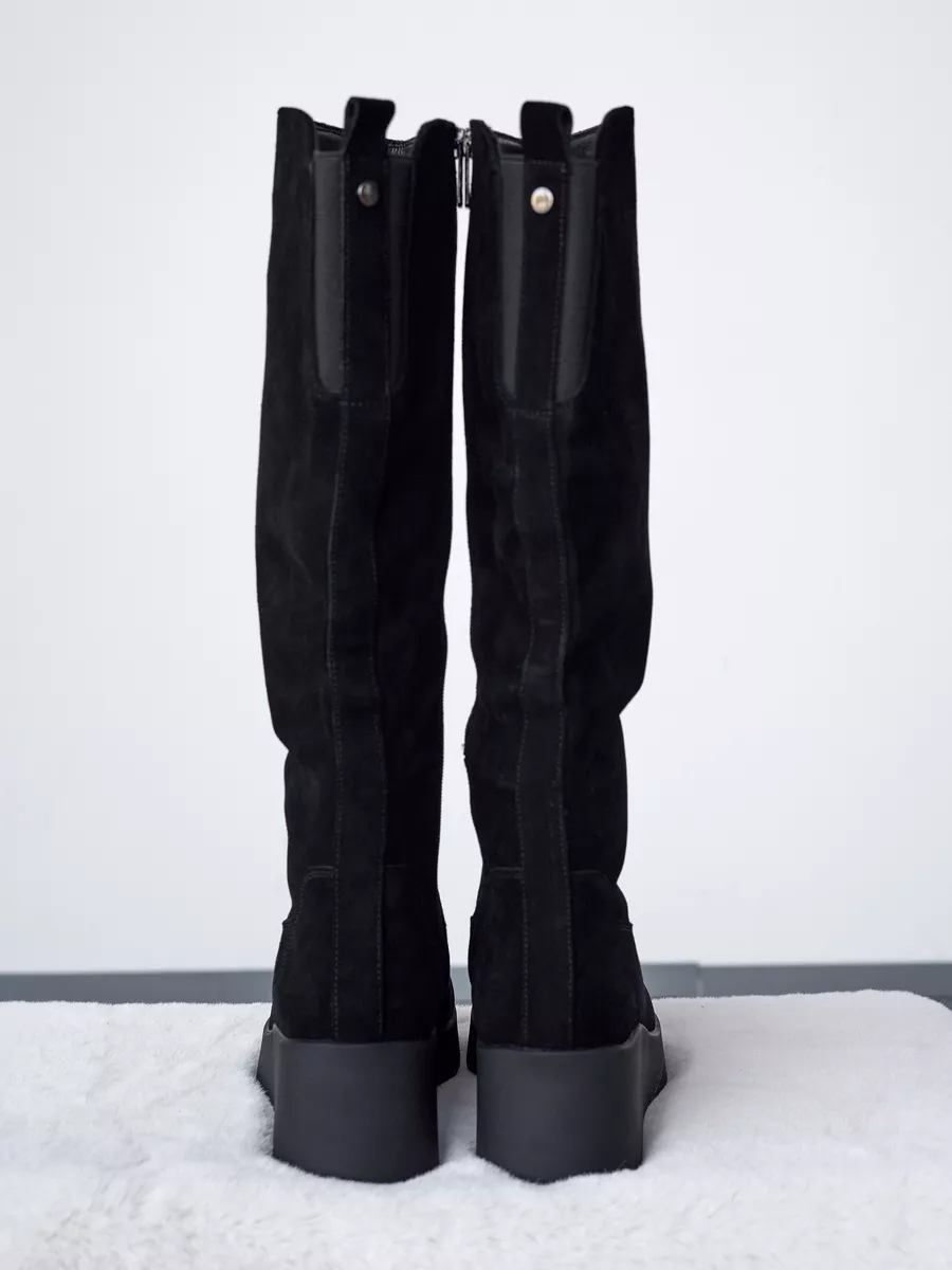 Наши сапоги изготовлены из натуральной замши, что гарантирует долговечность и элегантный внешний вид. Модная и классическая модель на устойчивой танкетке обладает стелькой с ортопедическим эффектом и удобной подошвой с нескользящей подошвой обеспечивает максимальный комфорт и устойчивость при ходьбе, даже на скользкой поверхности.
