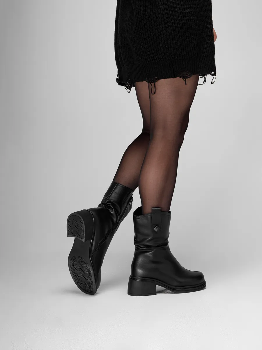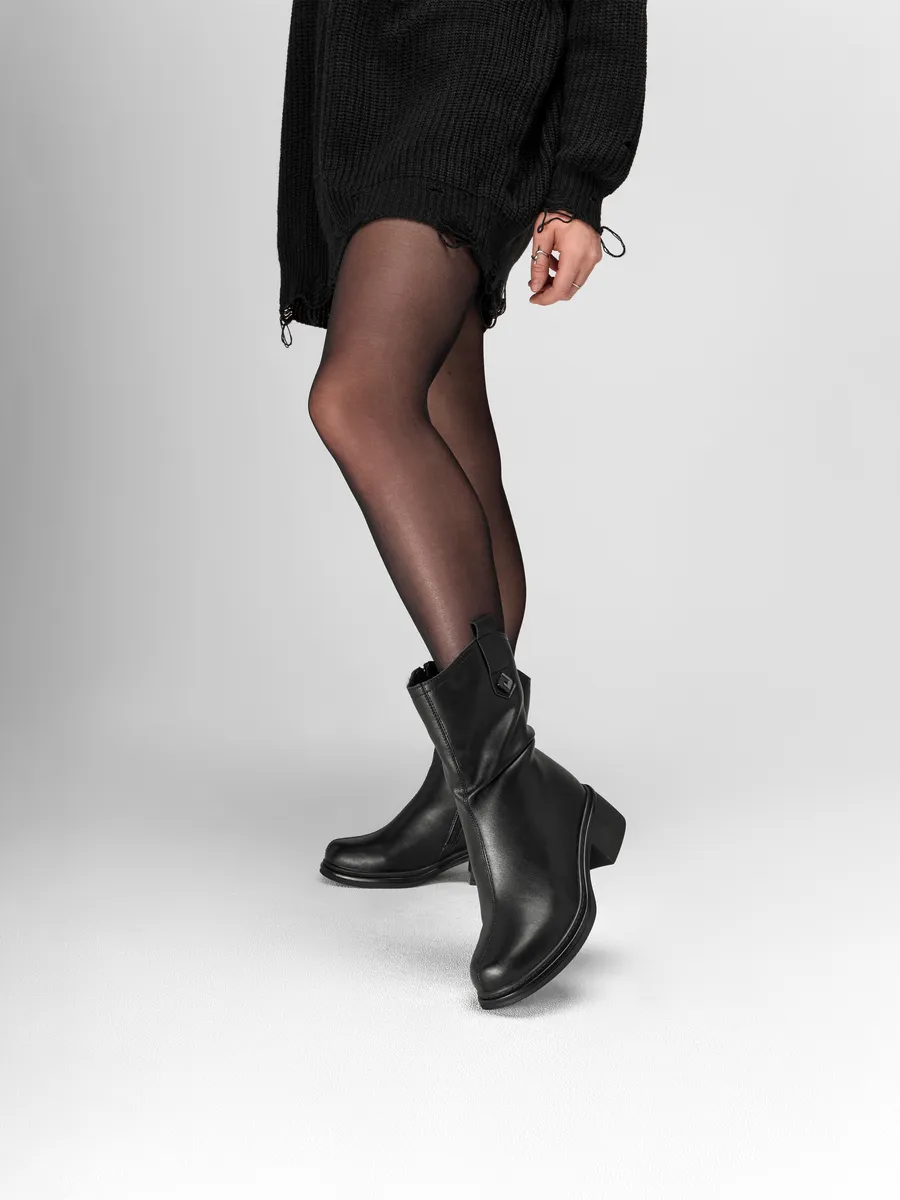 Классический черный цвет полусапог позволяет им стать универсальной деталью вашего гардероба. Они гармонично сочетаются с повседневной одеждой, кэжуал-образами, а также могут дополнять праздничные и вечерние наряды, создавая завершенный стильный образ.
