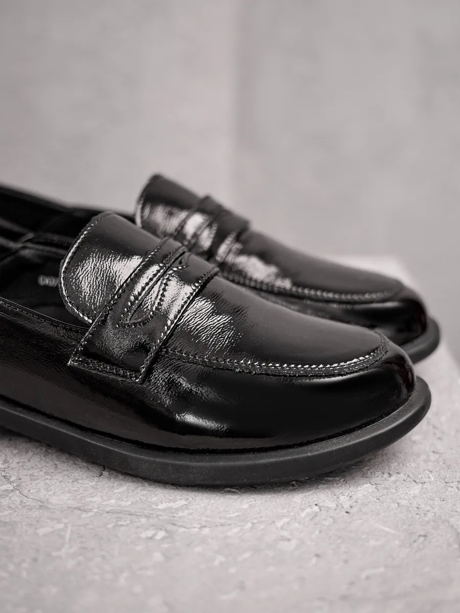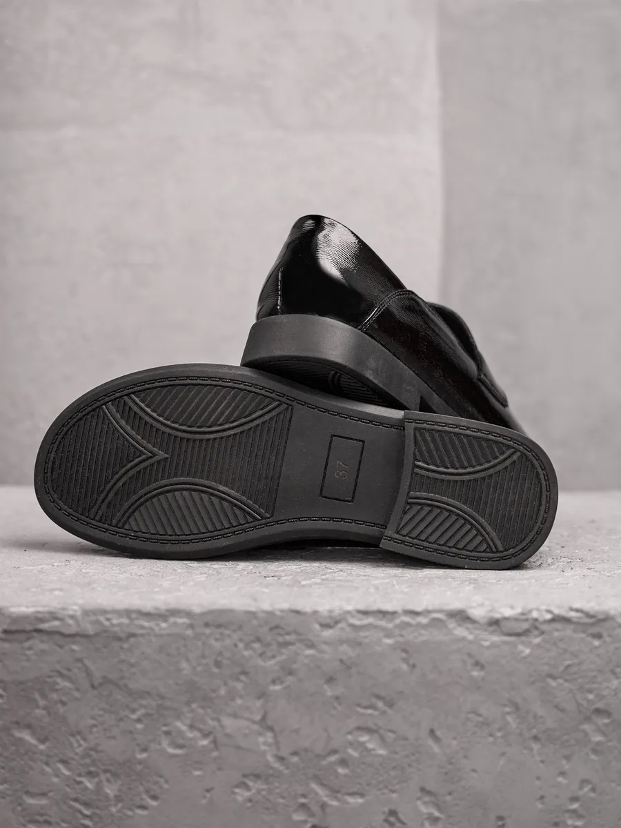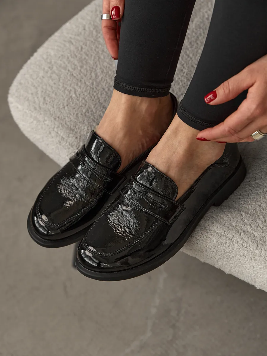 Лоферы маломерят на 0,5 - 1 размер. Ориентируйтесь на длину стельки указанную в размерном ряде. Туфли женские лаковые идут размер в размер, подходят на среднюю и увеличенную полноту ноги (7-8), выполнены из мягкой натуральной лаковой кожи, которая является дышащим и наиболее практичным материалом, она проста в уходе и долго сохраняет презентабельный внешний вид. Материал стельки высококачественная дышащая экокожа. Несъемная стелька амортизирующая и упругая. Такое сочетание обеспечивает комфортный микроклимат внутри обуви. Устойчивая и супер гибкая подошва из термопластичной резины подходит для межсезонной погоды и отличается хорошей устойчивостью к истиранию и механическим повреждениям, не скользит и обладает амортизационными свойствами, тем самым снимает нагрузку с позвоночника и поглощает удары стопы при ходьбе.