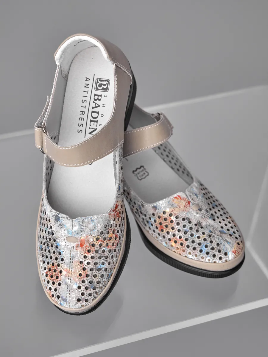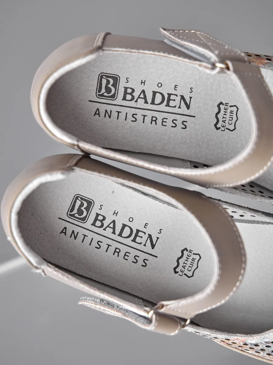 Босоножки Baden на устойчивом каблуке высотой 5см создадут модный и элегантный образ. За счет своего оригинального, но лаконичного дизайна и удобной колодки, они являются универсальными. Подойдут как для работы в офисе или медицинским работникам, так и в качестве нарядной пары на праздничные случаи. Застежка - липучка на щиколотке и удобная колодка делают обувь женскую максимально комфортной для вас. Светлые босоножки с открытым носом — отличный выбор для летнего отдыха на пляже или вечерних прогулок по набережной. Их стильный дизайн придаст вашему образу нотку свежести, а удобная платформа даст возможность комфортно пройти любые расстояния.
