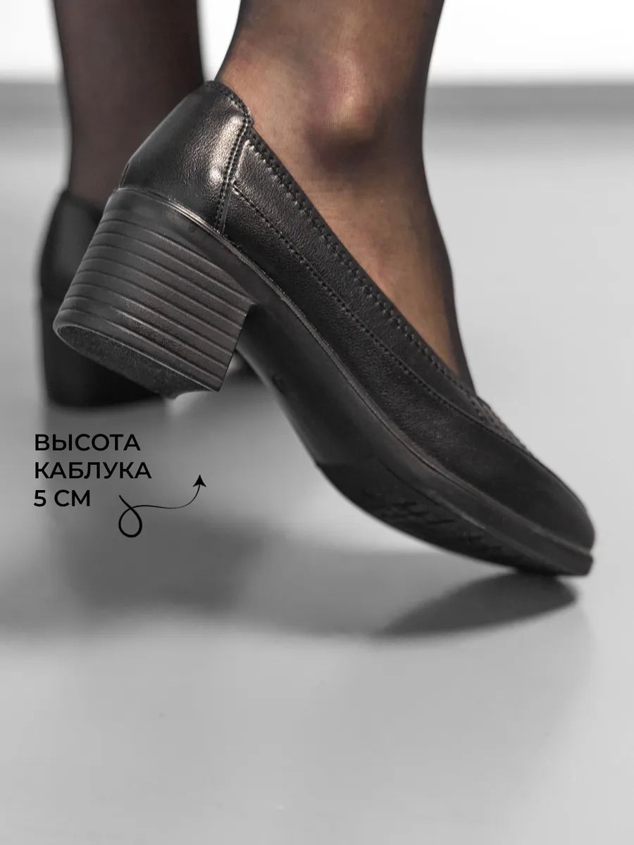 Туфли выполнены в классическом стиле с закрытым круглым носком, что делает их утончённым выбором для женщин, ценящих сдержанную элегантность. Устойчивый каблук средней высоты обеспечивает комфорт на протяжении всего дня. Эта обувь подойдёт как для работы в офисе, так для торжественных мероприятий, повседневных прогулок.