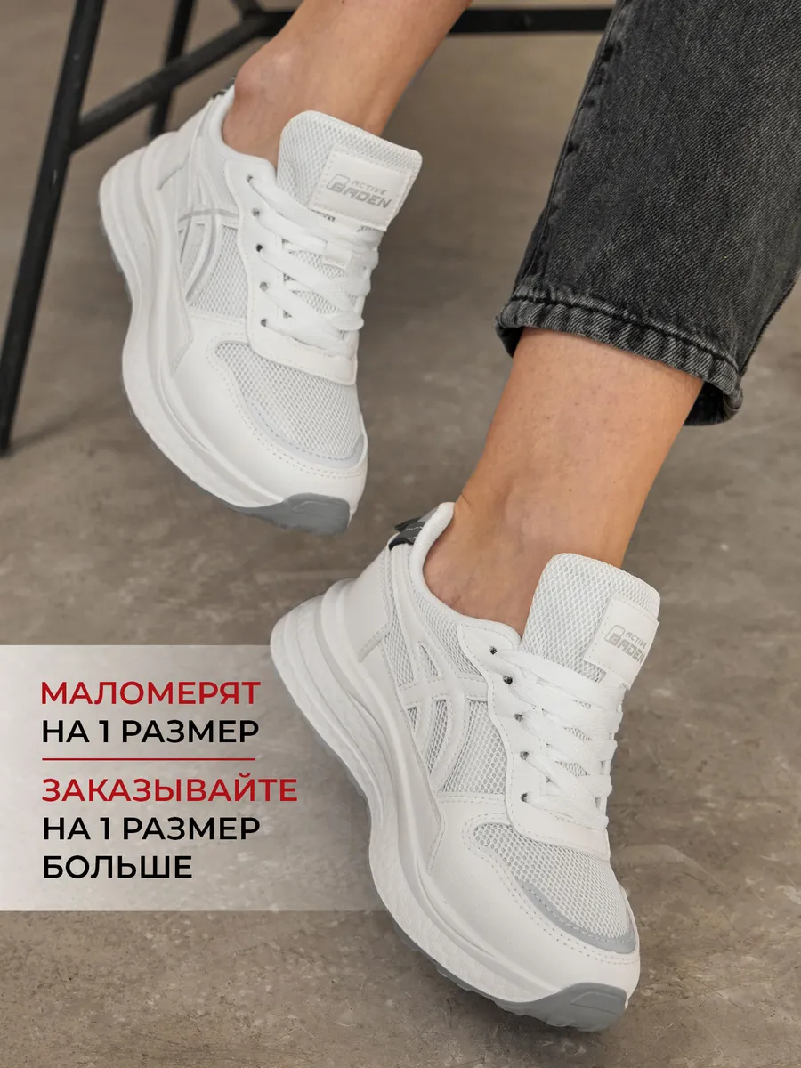 Легкие белые кроссовки маломерят на 1 размер и хорошо подходит на ногу средней и небольшой полноты (7). При выборе размера рекомендуем обращать внимание на длину стельки, указанную в размерном ряде. Выполнены из мягкой натуральной кожи и текстильной сетки - дышащего материала, который быстро принимает форму стопы для максимального удобства. Сетка и подкладка из текстиля обеспечивает хороший воздухообмен даже в жаркую погоду. Имеют мягкую амортизирующую съемную стельку и невероятно лёгкую и гибкую подошву из ПВХ, которая не скользит, прекрасно амортизирует стопу для максимального комфорта и сохраняет здоровье ваших ног, а также поглощает удары стопы при ходьбе, тем самым снимает нагрузку с позвоночника. Так же кроссовки оснащены светоотражающими элементами, в виде вставок.